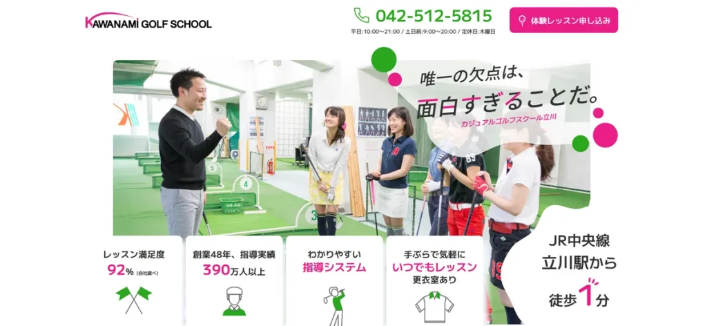 • 立川エリアにはマンツーマン対応のゴルフスクールが多数ある