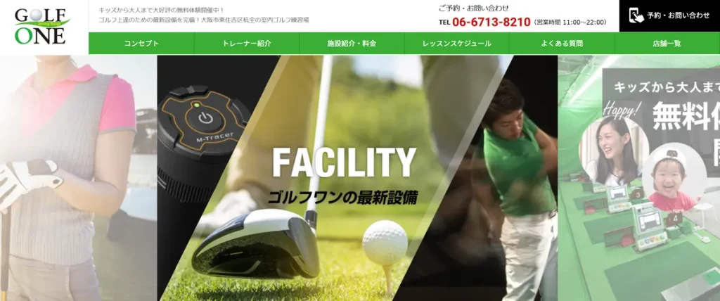 天王寺エリアでマンツーマンのゴルフレッスンを受けたいなら、ゴルフワン大阪(GOLF ONE 大阪杭全店)も候補に入れておきたいスクールです。