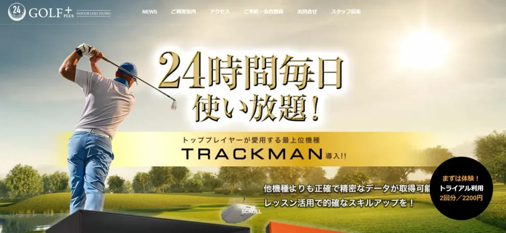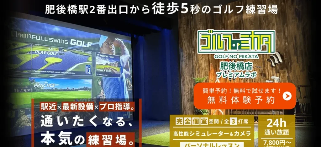 クラブやシューズの無料レンタルも用意されているため、仕事帰りや外出先からでも通いやすいのが特徴です。