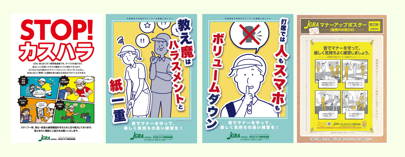 練習場内のマナーアップ喚起用に、両面が使えるA2ポスターです。(お申込書は下記画像をクリックしても申込書をダウンロード出来ます)