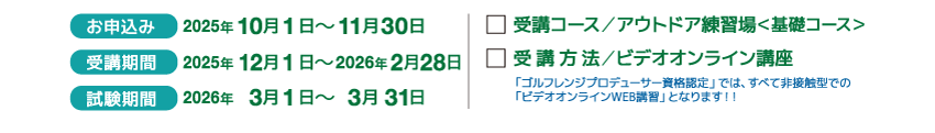 ※両科目をご受講後、試験に合格すると、「ゴルフレンジプロデューサー」の認定証を公益社団法人全日本ゴルフ練習場連盟より発行いたします。