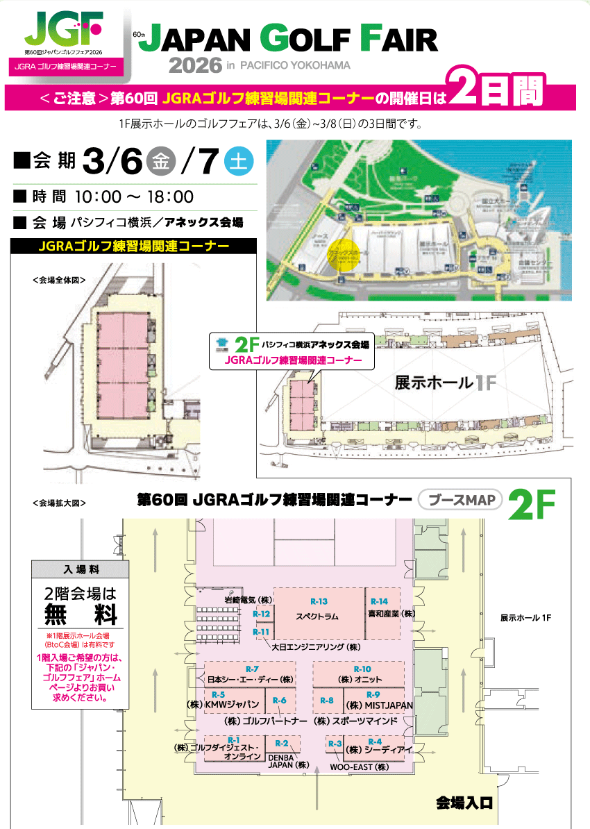 ※1階入場は有料となります。1階入場券は「第60回ジャパンゴルフフェア2026」サイトからお買い求めいただけます。